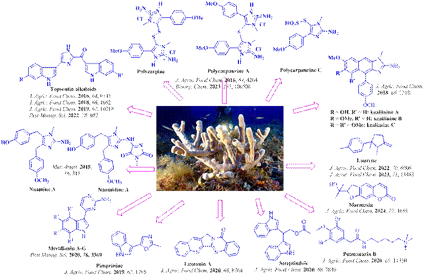 Xu, Y. B.; Guo, X.; Li, T. Y.; Li, T. Q.; Ding, X.; Wang, Z. W.;* Lu, A. D.;* Wang, Q. M.* Design, synthesis, and biological evaluation of novel derivatives of the marine natural product laurene. J. Agric. Food Chem. 2023, 71, 14483–14492.