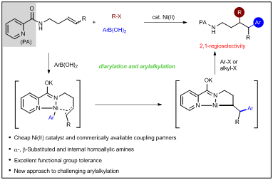 图1. 镍催化吡啶酰胺(PA)导向的高烯丙基胺的双碳官能团化