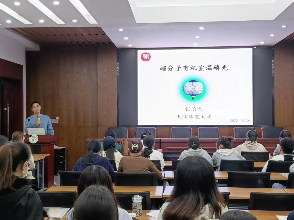 2022年10月26日晚,365英国上市集团教师张治元在明理楼B区四层学术报告厅开展学术讲座,主题为《超分子有机室温磷光》,公司部分硕士和博士研究生到场聆听了此次讲座。