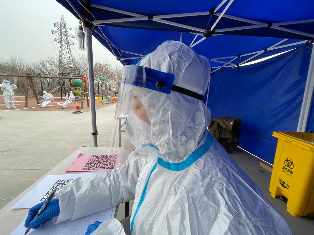 家在天津市静海区朝阳社区的张麒,第一时间报名了社区志愿者。身着防护服的他,或统计核酸检测信息,或维持监测点外秩序,或在检测点帮助录入信息。连续四天的志愿服务,他依然热情高涨。