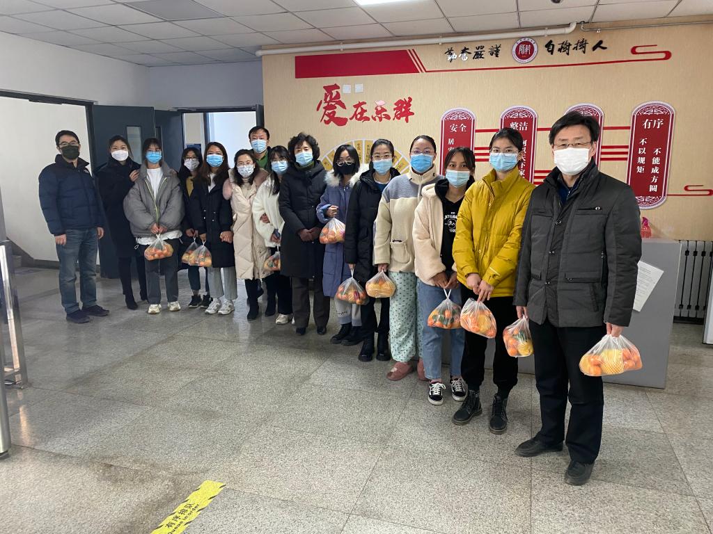 老师们深入了解留校期间员工们的科研进度、学习情况、心理和生活状况、在校生活需求等,与同学们亲切交谈,倾听他们的心声,并为他们带来了慰问品。希望同学们在疫情特殊时期,坚持健康饮食、保持良好作息及心态;充分利用假期时间,做好学业规划,脚踏实地,勤奋认真,提早开展毕业论文撰写,努力夯实专业知识;同时务必做好健康管理,监测体温变化,遵守“不离校,不离津”的管理要求,如遇特殊情况及时与辅导员老师沟通,严格落实好公司、公司疫情防控的各项要求。
