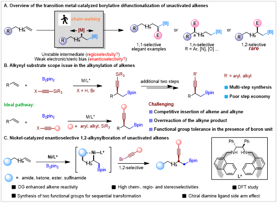 图1. 非活化烯烃不对称1,2-硼炔基化反应研究