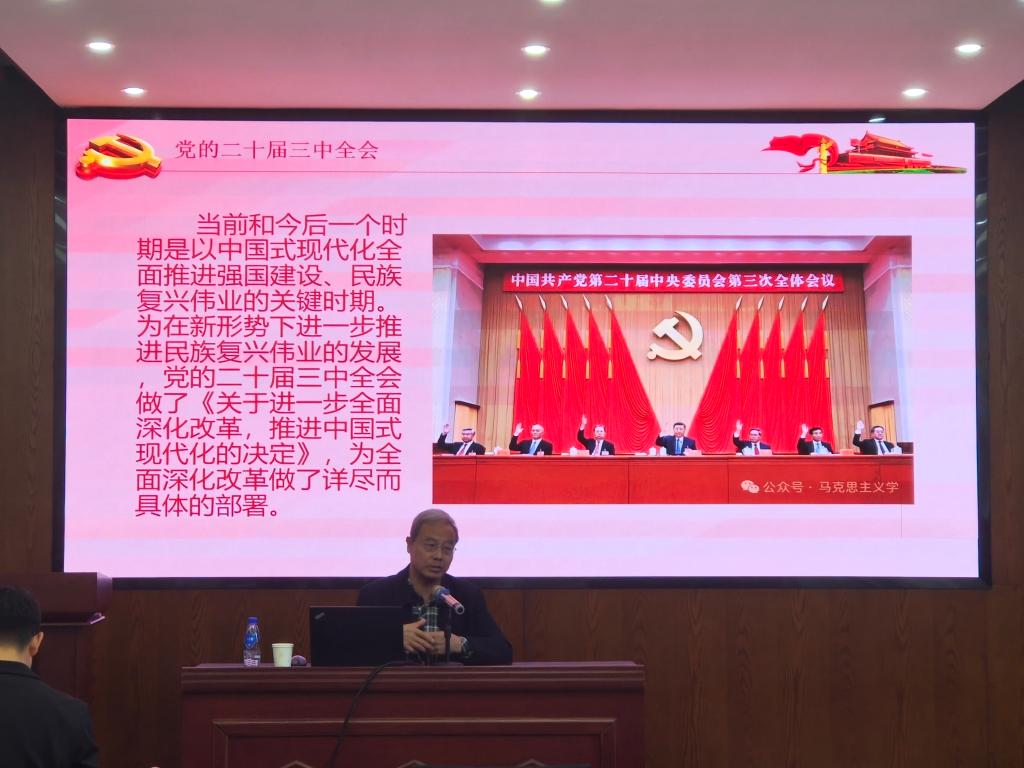 2024年11月29日,365英国上市集团邀请翟昌民教授为全体教职工讲授党的二十届三中全会精神专题党课。