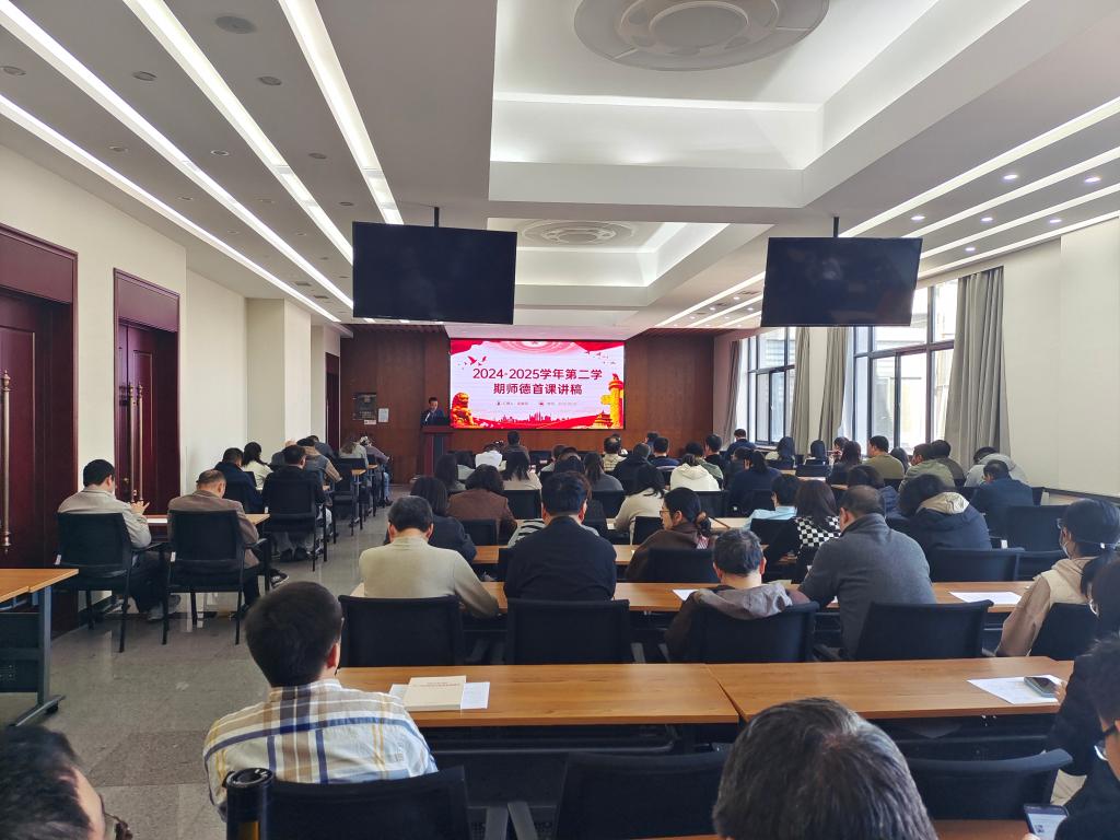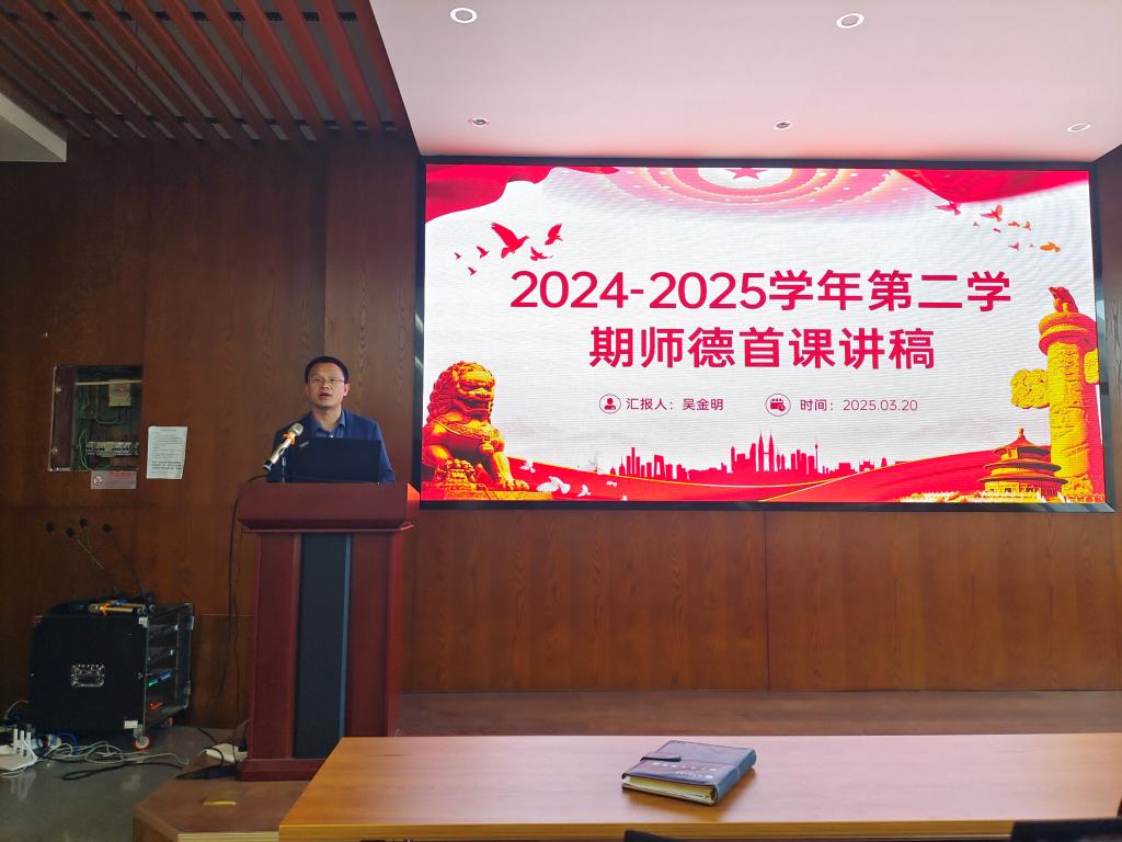 会上,吴书记主要围绕《中共中央国务院关于弘扬教育家精神加强新时代高素质专业化教师队伍建设的意见》和《新时代高校教师职业行为十项准则》,从“深刻领会教育家精神内涵”“严守《新时代高校教师职业行为十项准则》”“将准则与精神落实到日常工作”三部分,理论与实践相结合,对全体教师开展师德师风警示教育。他指出,两份文件对加强新时代教师队伍建设、提升师德师风水平有着重要意义,教师不能只做传授书本知识的“经师”,而要成为塑造员工品格、品行、品味的“人师”。教育家精神是教师队伍的灵魂,作为师范院校的教育工作者,我们肩负着培养未来教师的重任,师德师风建设更是我们工作的生命线,关乎着我们师范高校人才培养质量和教育事业的长远发展。